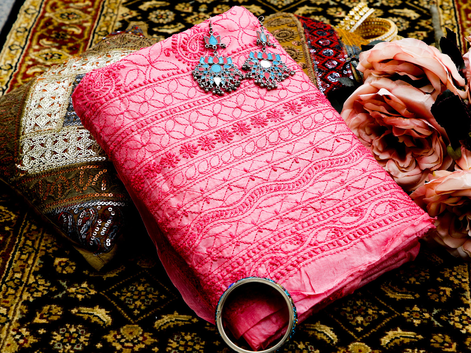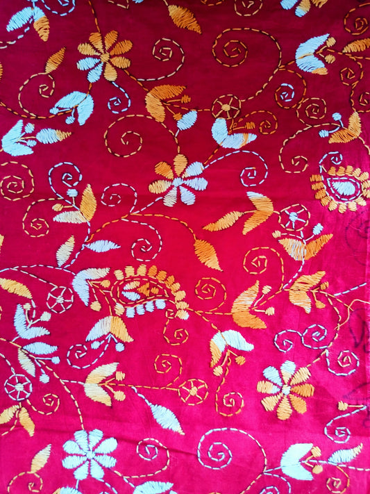 Pure Cotton All Over Kantha Work Bright Red-Pink Blouse